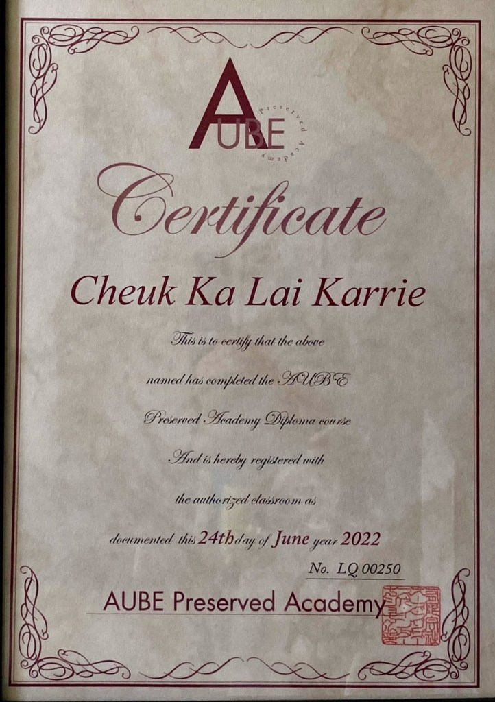 Certificate from Japan AUBE Preserved Academy 2022