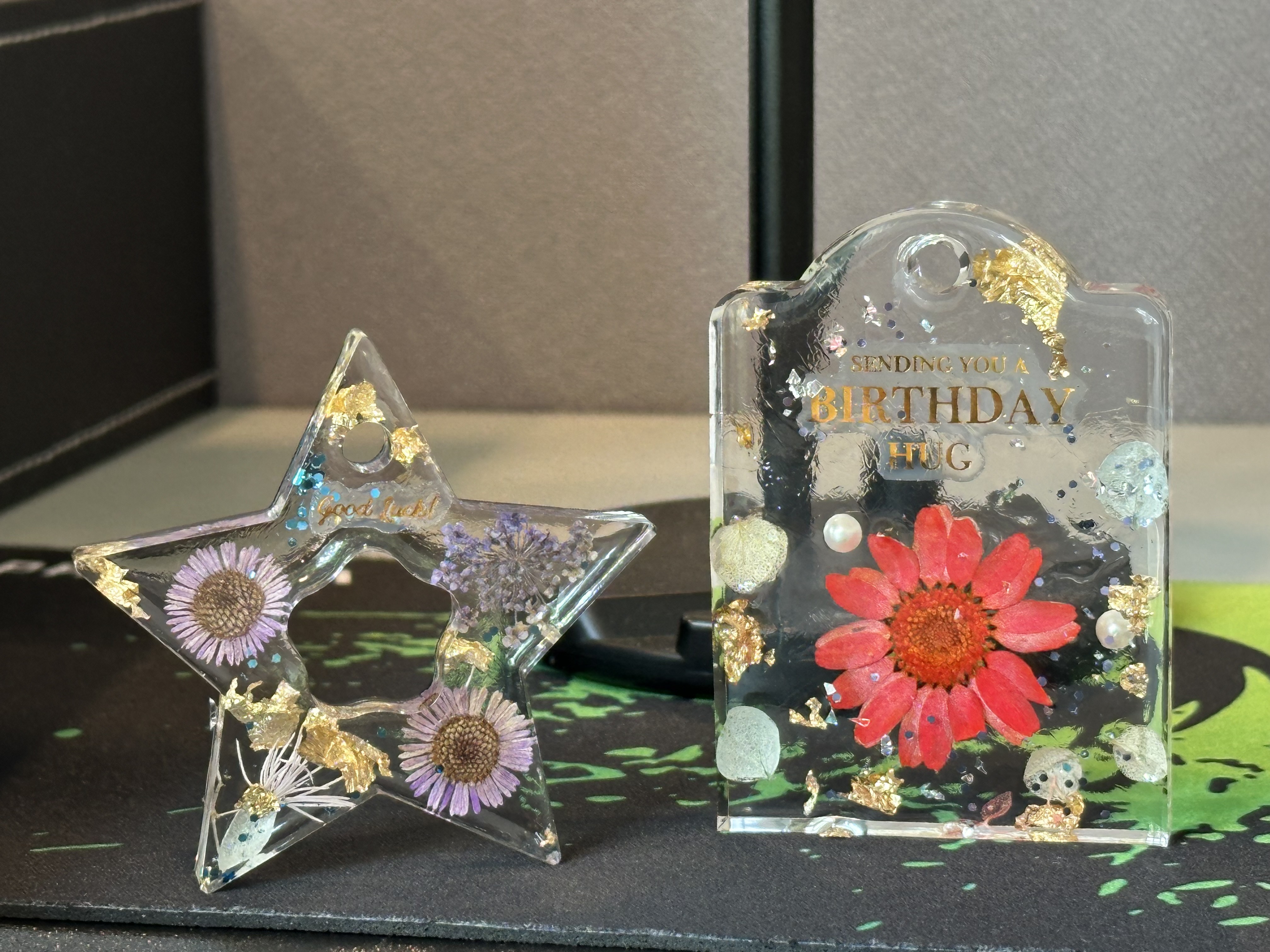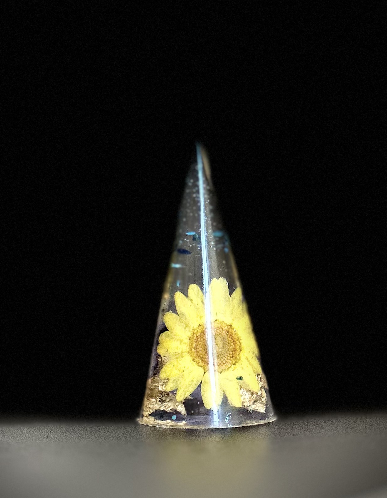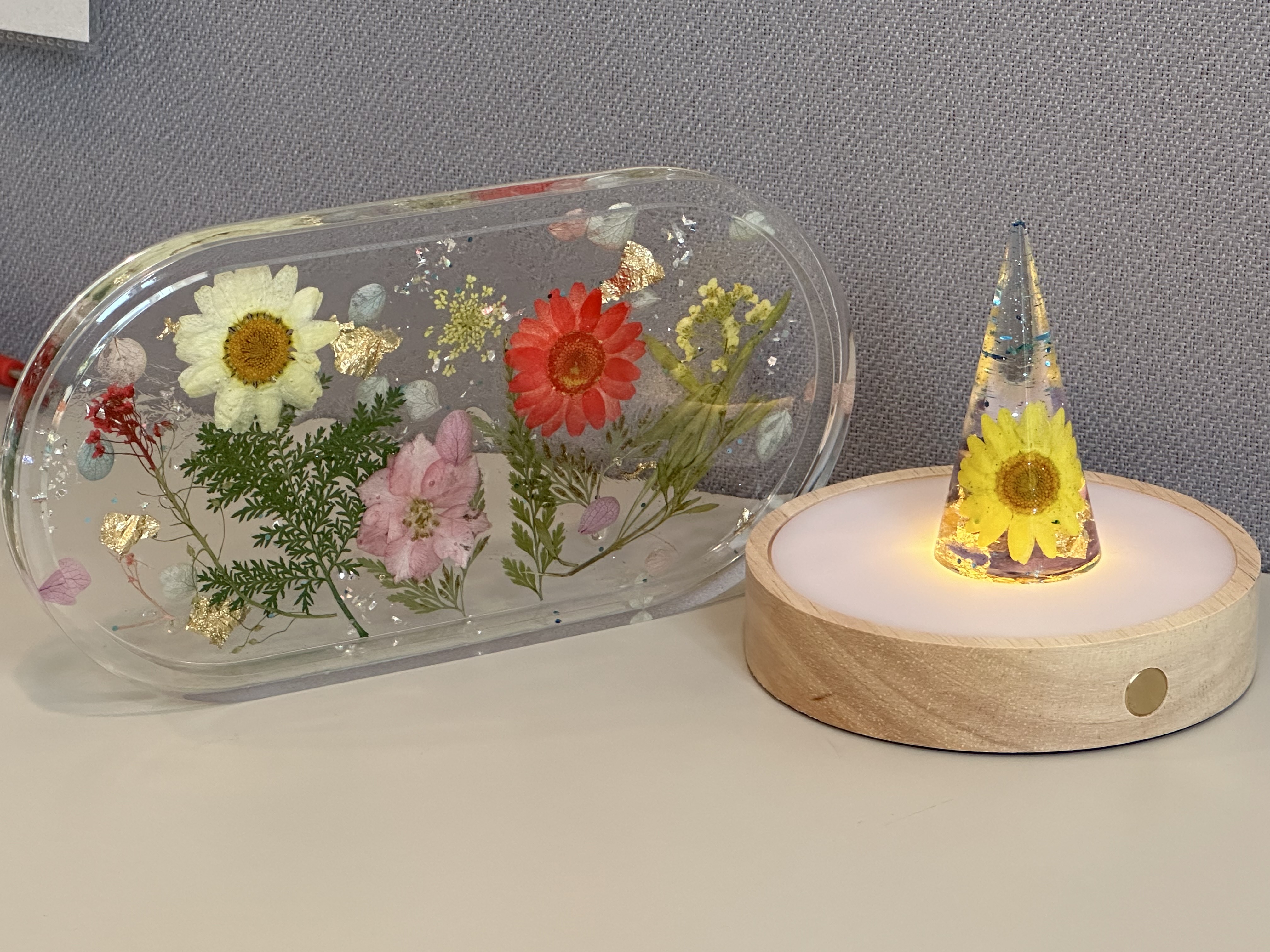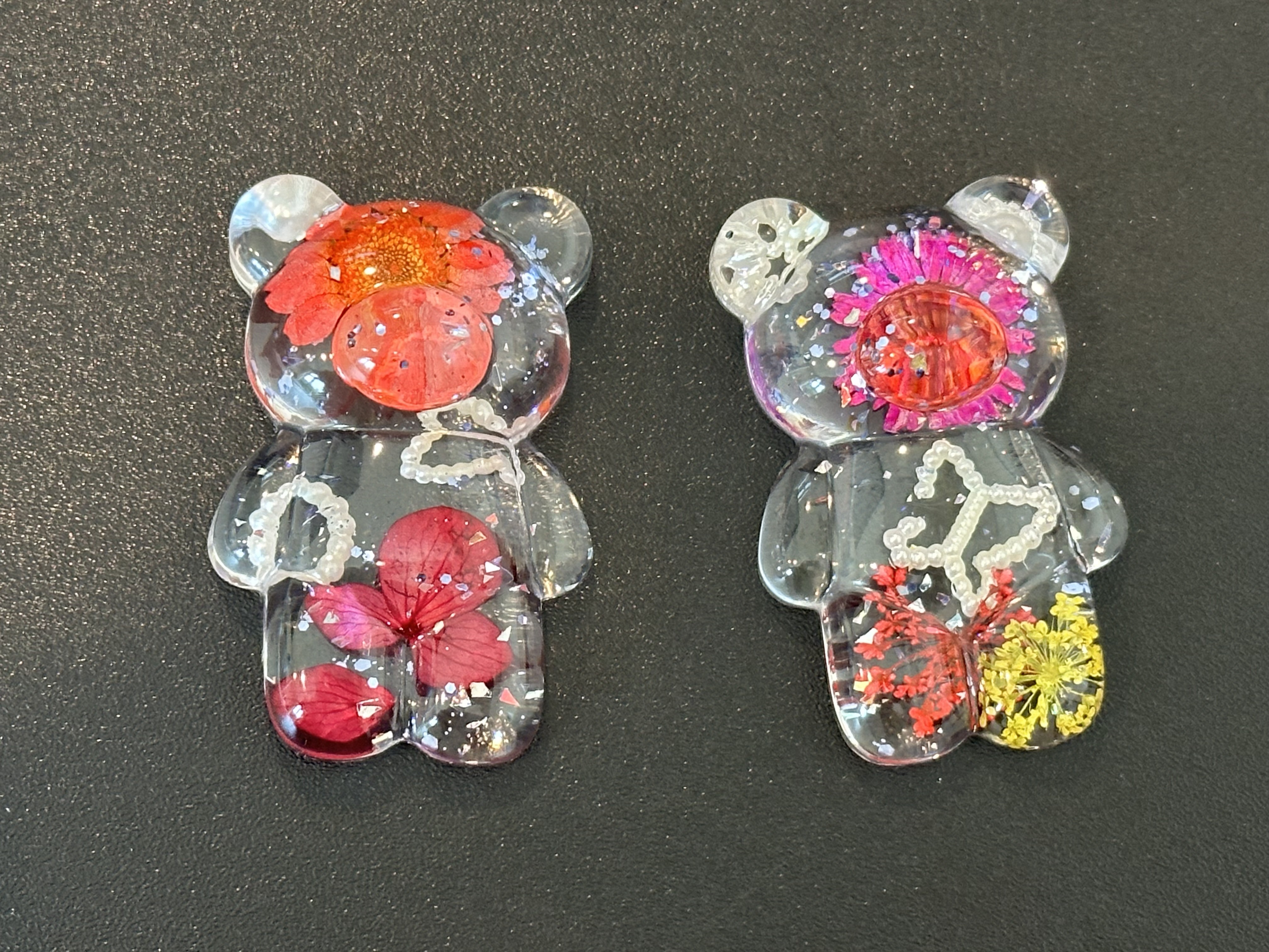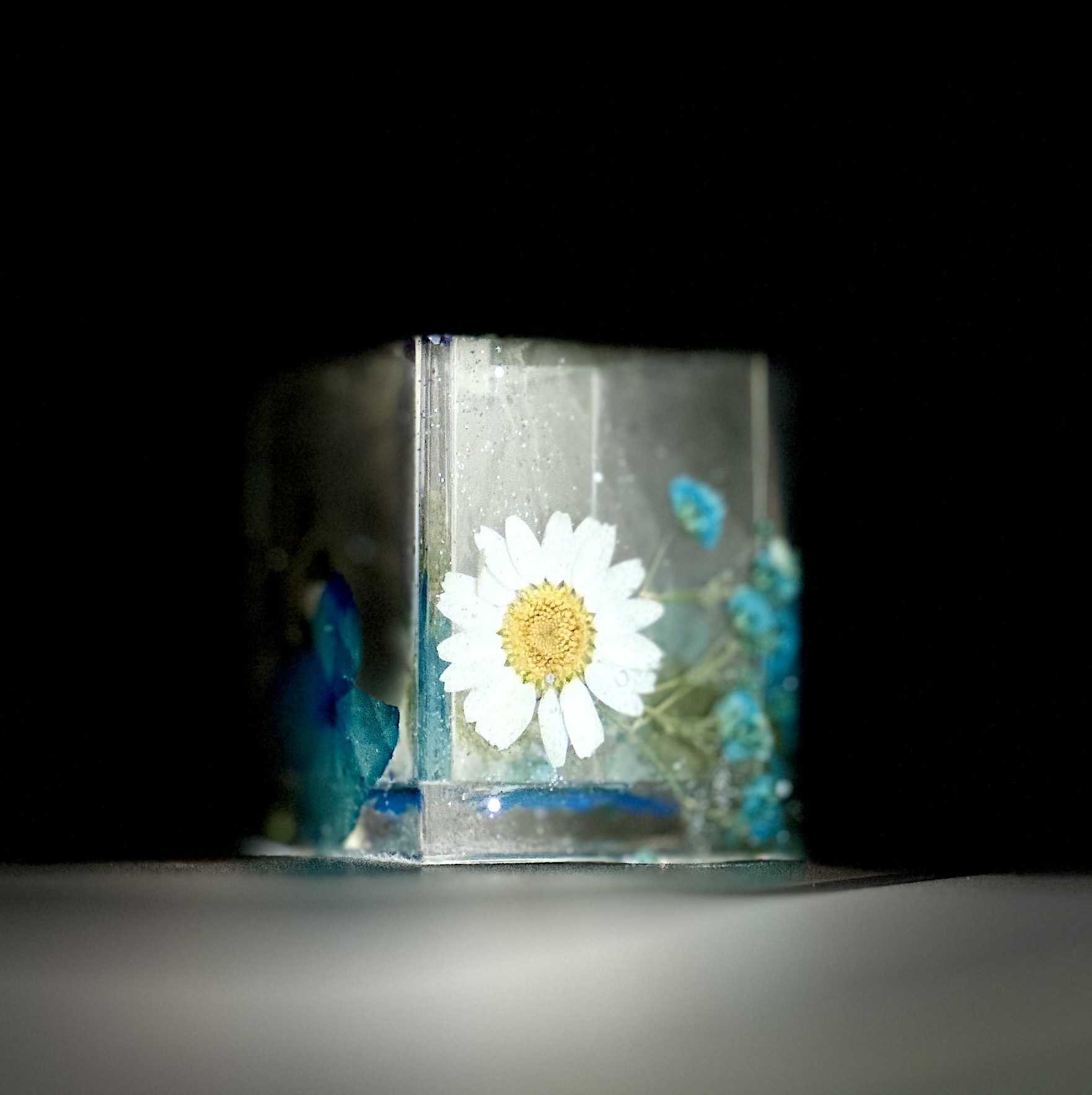 “FLEURS DE GLACE" literally means “flowers in ice". We borrow this French term to symbolize the marvellous beauty of preserved flowers / dried flowers / tiny trinkets in the highly transparent crystals.