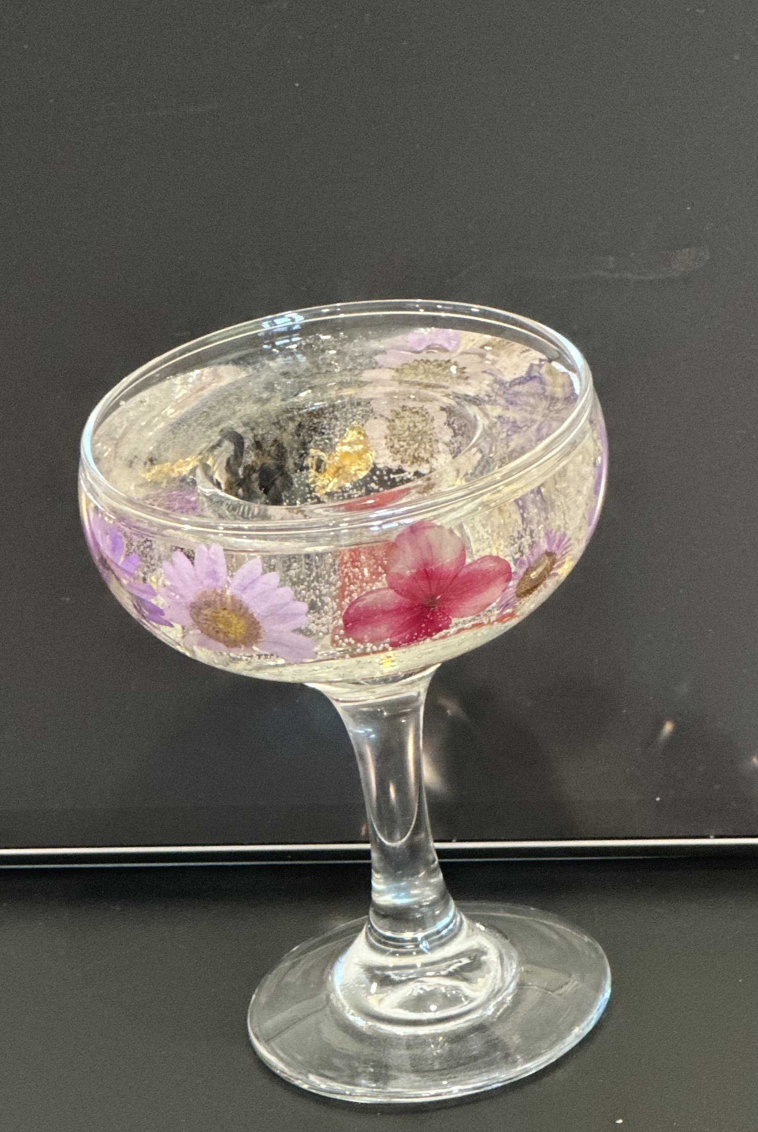 “FLEURS DE GLACE” 字面上的意思是"冰中之花",但其實更像是用高透明度的水晶,將不凋花、乾燥花及其他裝飾物,利用注膠,將美麗保存在容器內,長長久久⋯⋯