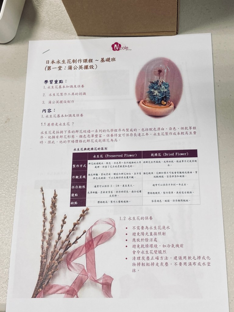 不過這次永生花制作是基礎班 –水晶球制作,需要的技術比較初階 (抱歉了,各位學員😆),未來將開設更多進階以及多樣性的手作體驗課程,有興趣參加的學員們記得常常追蹤我們並提早報名喔!